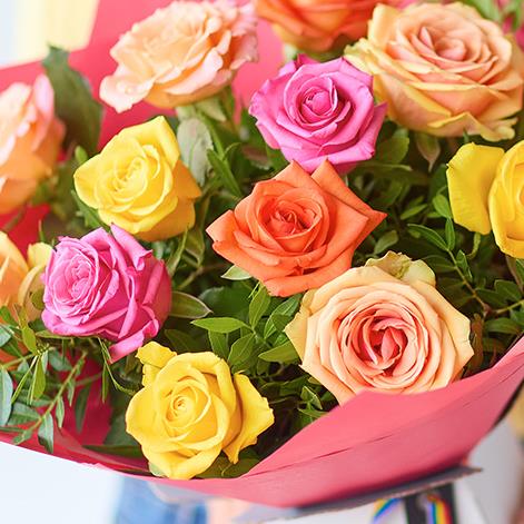A magnificent assortment of roses in beautiful colours. A romantic rainbow.