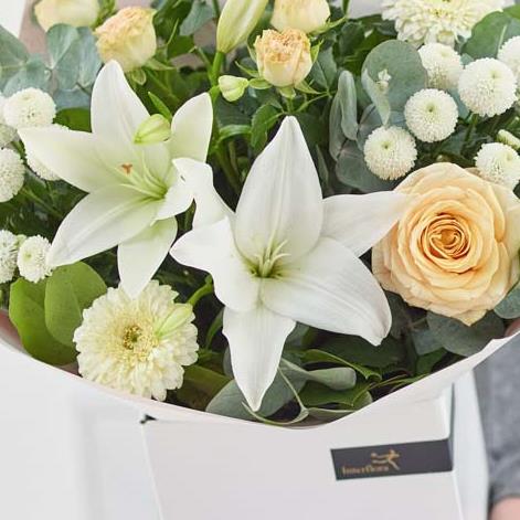 Each and every one of our sympathy gifts is one-of-a-kind, lovingly hand-crafted by an artisan florist using the freshest stems available on the day so whilst your gift will look different to the one pictured, it’ll be just as beautifully thoughtful.