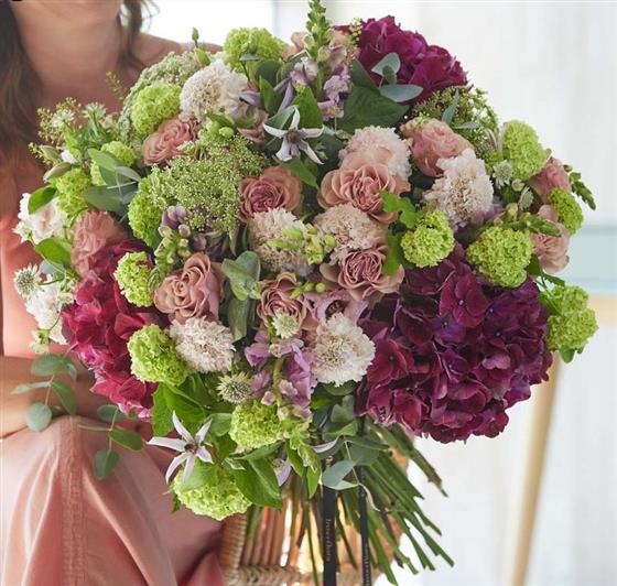 A spectacular display of seasonal blooms, specially chosen by us. We'll chose only the finest, freshest flowers and handcraft them. We will select every flower by hand and craft into a floral marvel they'll never forget. The blooms we choose will depend on the season and what's looking best, but the bouquet could include hydrangeas antirrhinums, lisianthus, viburnum, astrantia, clematis, ammi, large headed roses or eucalytus