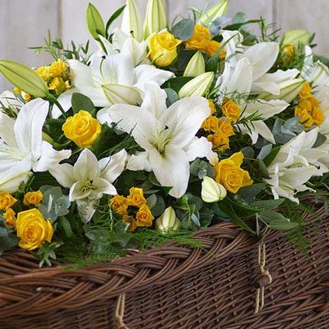 Lily and Rose Casket Spray Yellow Large