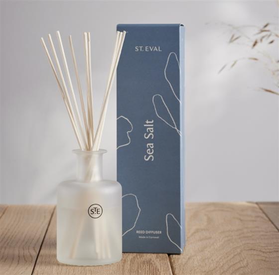 Each gift box comes with a glass display bottle with a St. Eval motif, 10 reeds and 150ml bottle of Sea Salt fragrance